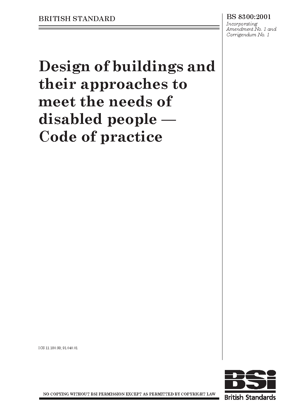 Design of buildings and their approaches to meet the needs of disabled people. Code of practice