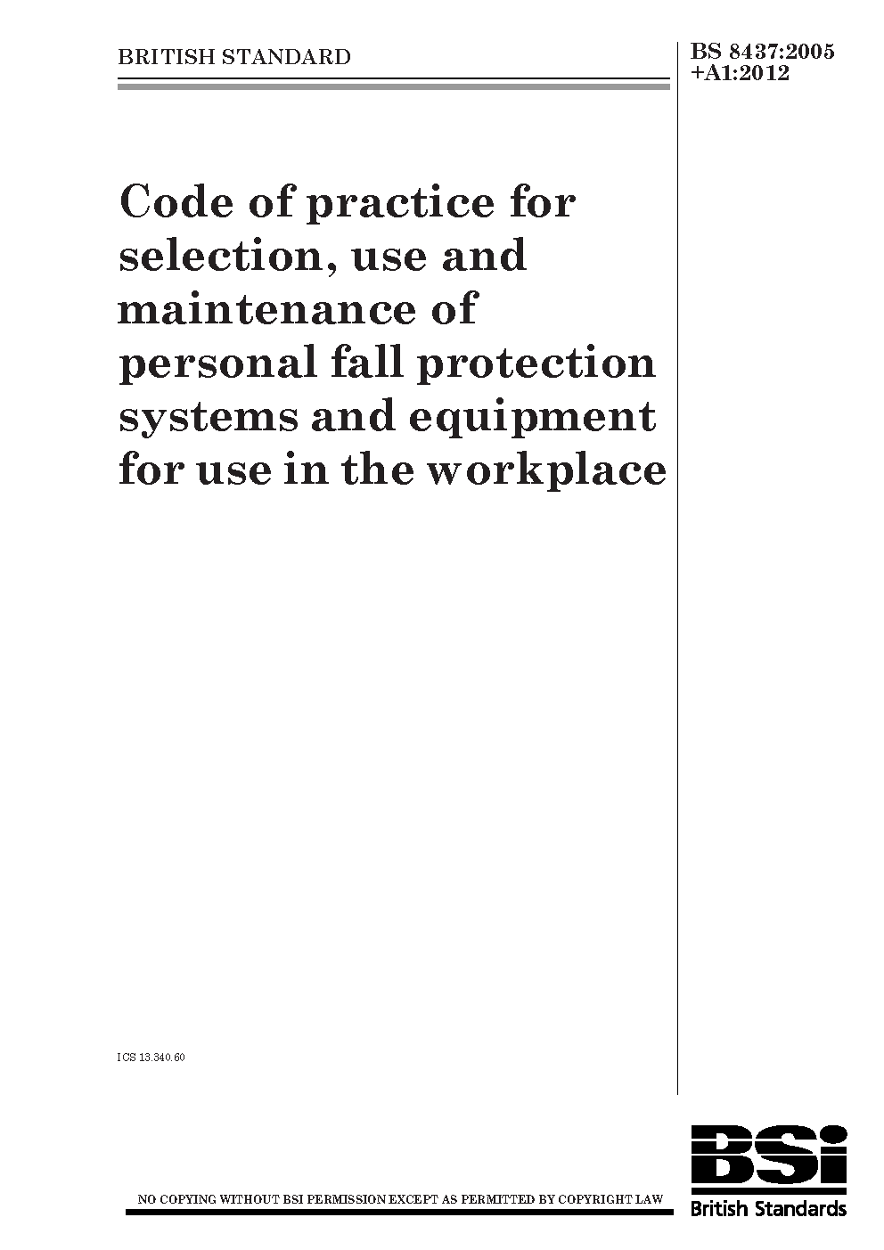 Code of practice for selection, use and maintenance of personal fall protection systems and equipment for use in the workplace