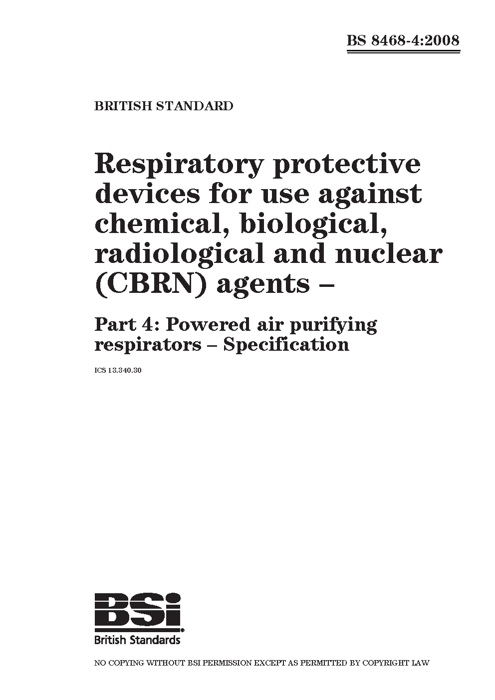Respiratory protective devices for use against chemical, biological, radiological and nuclear (CBRN) agents Powered air purifying respirators. Specification