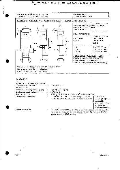 Detail specification for solder-sealed quartz crystal units for oscillator applications. AA, CX and BC/1 enclosures, 0.8 to 20 MHz and 3.0 to 30 MHz frequency ranges. Fundamental thickness-shear mode, AT-cut, for operation over narrow temperature ranges (temperature controlled). Full assessment level