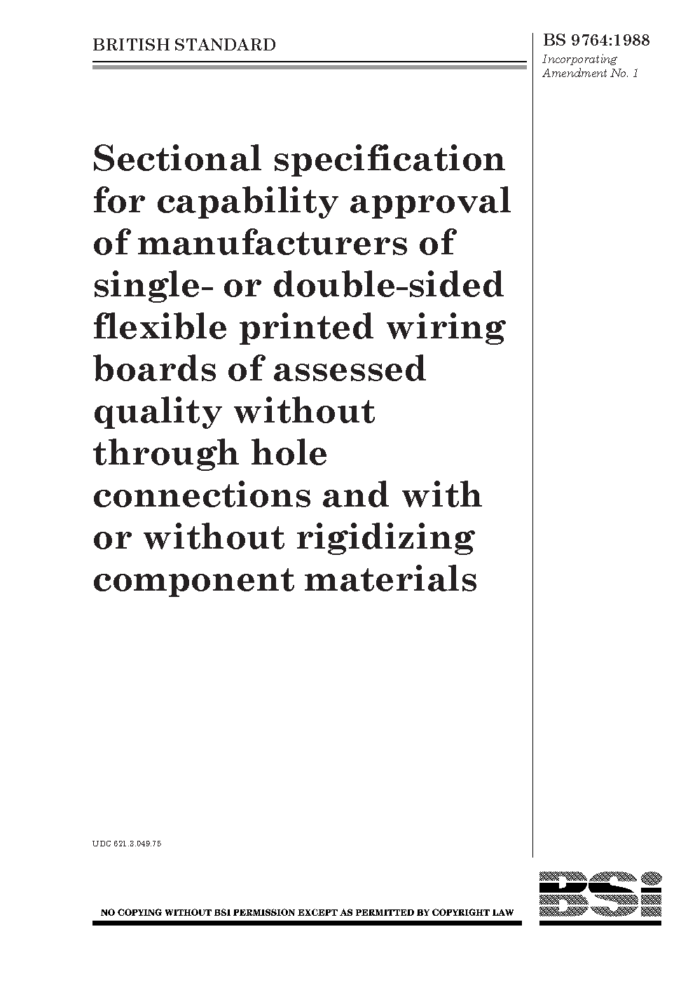 Specification for printed circuits of assessed quality: sectional specification for flexible and flexi-rigid printed circuits without through hole connections