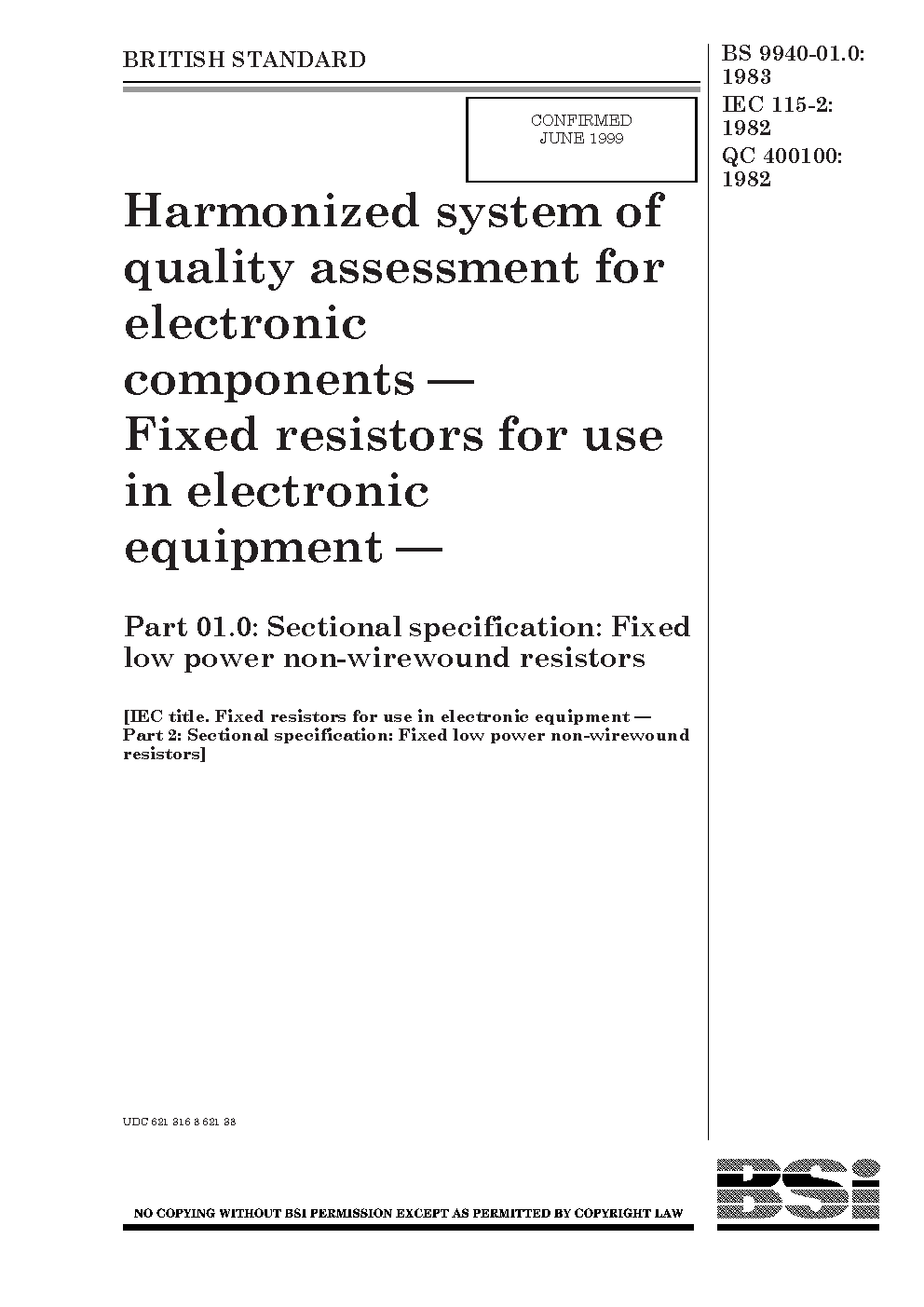 Harmonized system of quality assessment for electronic components. Fixed resistors use in equipment Sectional specification: fixed low power non-wirewound