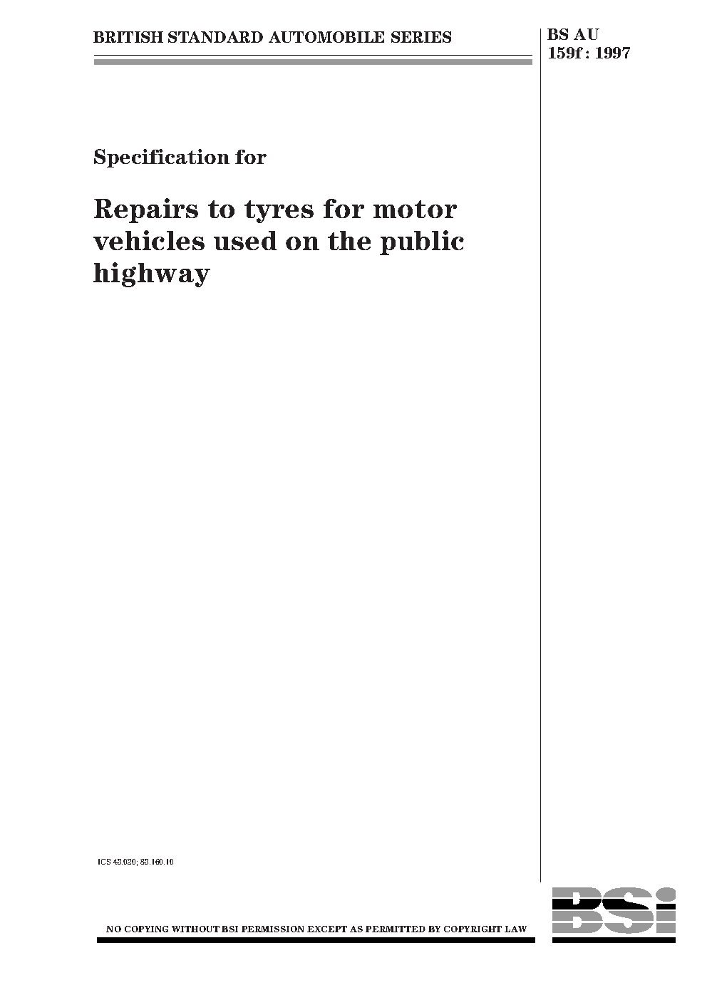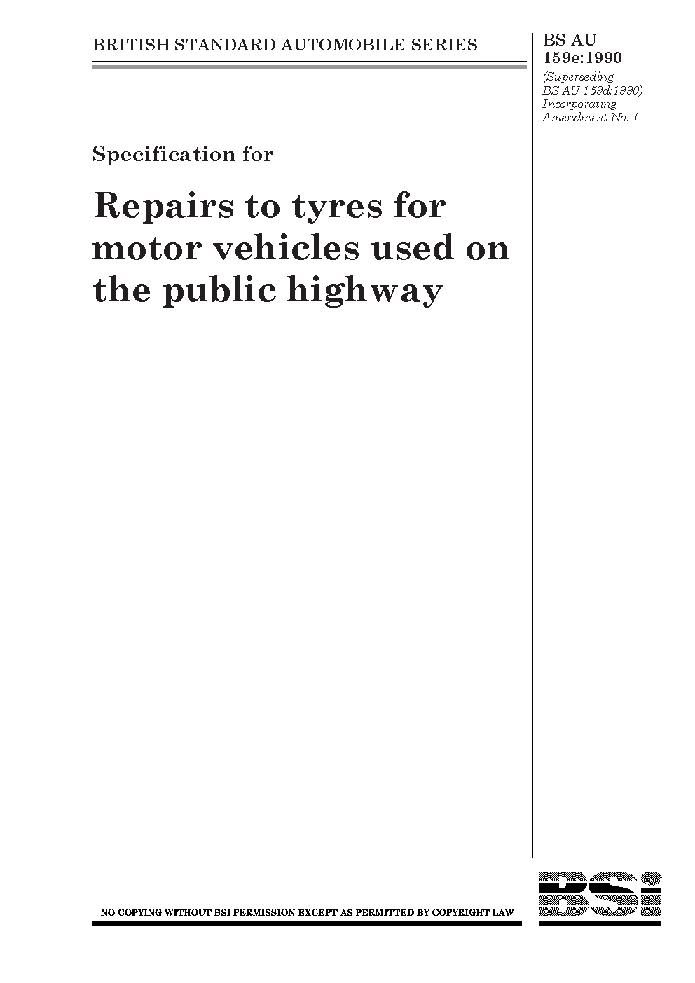 Specification for repairs to tyres for motor vehicles used on the public highway