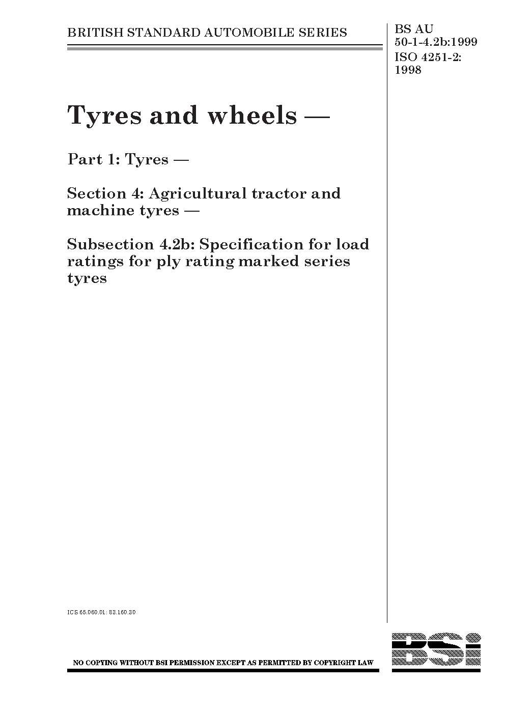 Tyres and wheels. Tyres. Agricultural tractor machine tyres Specification for load ratings ply rating marked series
