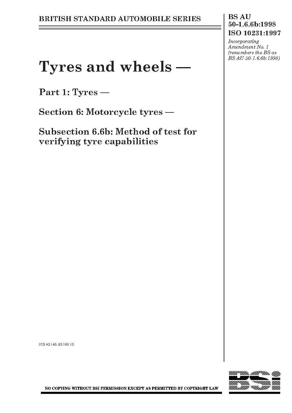 Tyres and wheels. Tyres. Motorcycle tyres Method of test for verifying tyre capabilities