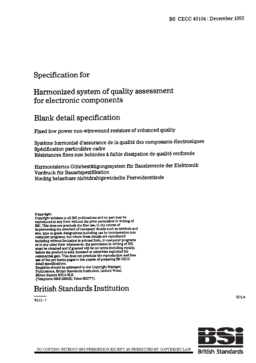 Specification for harmonized system of quality assessment for electronic components. Blank detail specification. Fixed low power non-wirewound resistors of enhanced quality