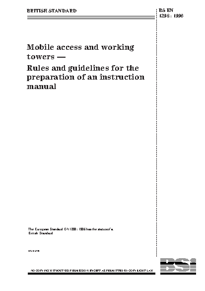 Mobile access and working towers made of prefabricated elements Rules guidelines for the preparation an instruction manual