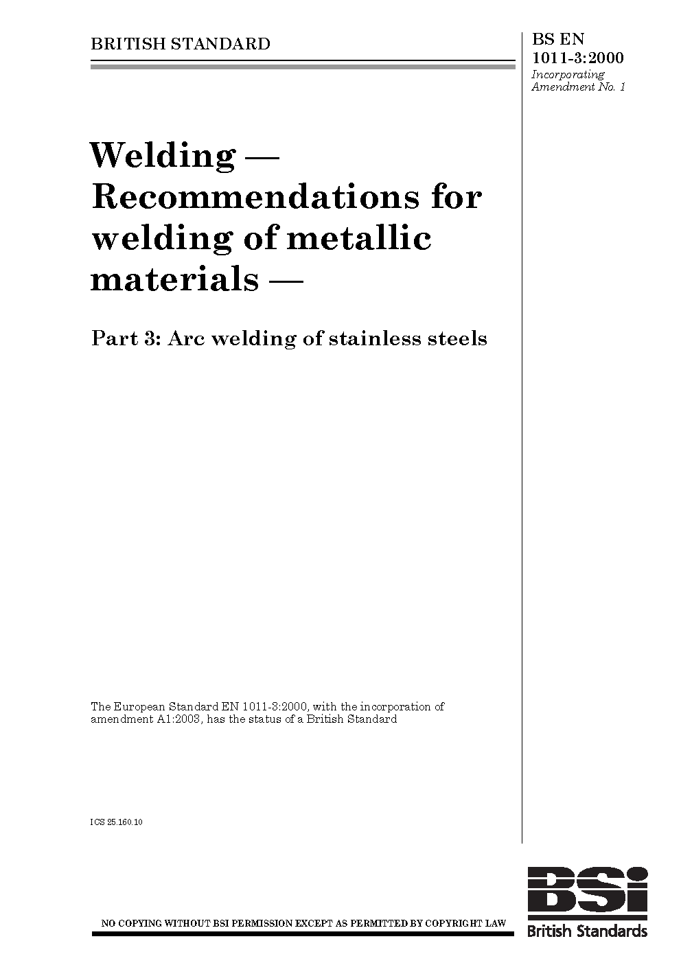 Welding. Recommendations for welding of metallic materials Arc stainless steels