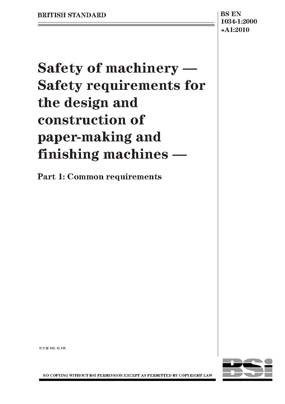 Safety of machinery. requirements for the design and construction paper making finishing machines Common