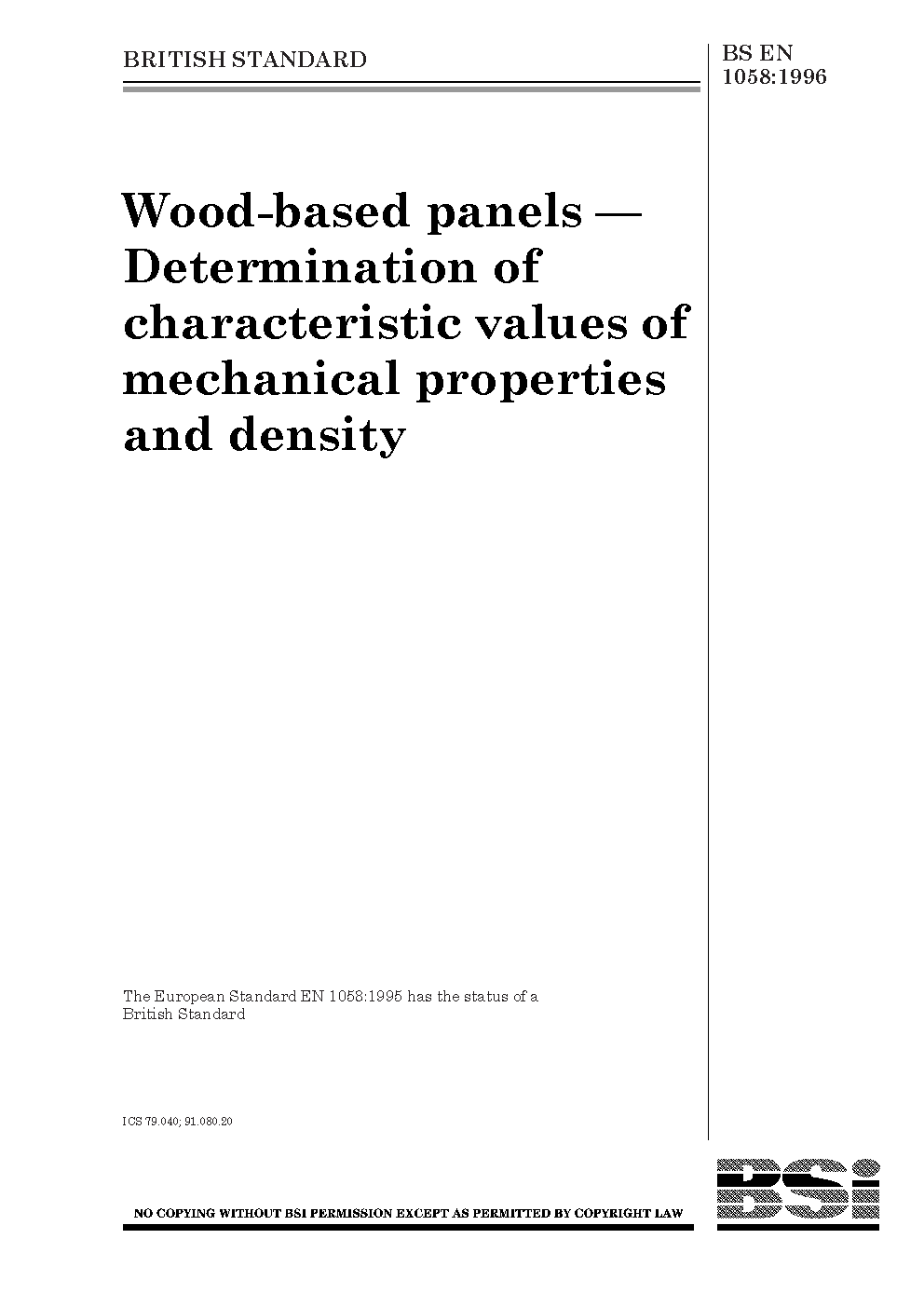 Wood-based panels. Determination of characteristic 5-percentile values and characteristic mean values