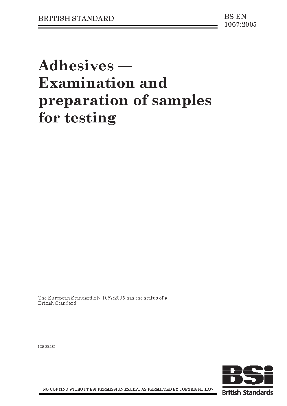 Adhesives. Examination and preparation of samples for testing