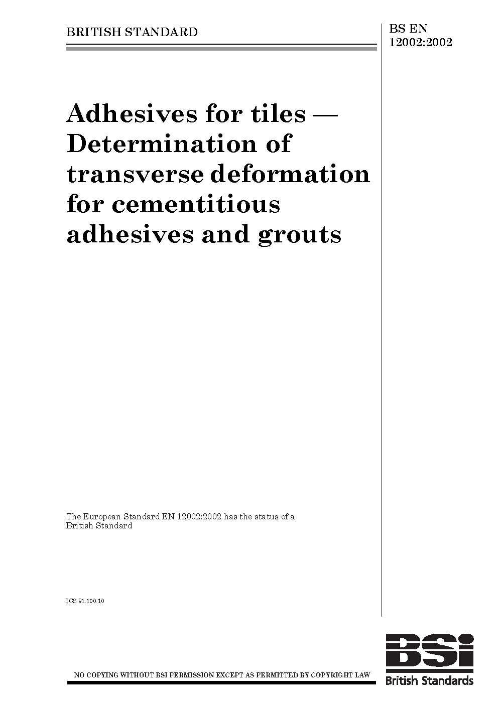 Adhesives for tiles. Determination of transverse deformation for cementitious adhesives and grouts