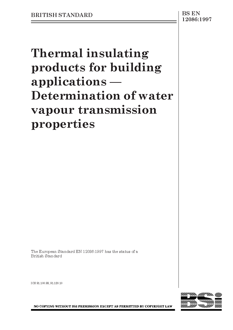 Thermal insulating products for building applications. Determination of water vapour transmission properties