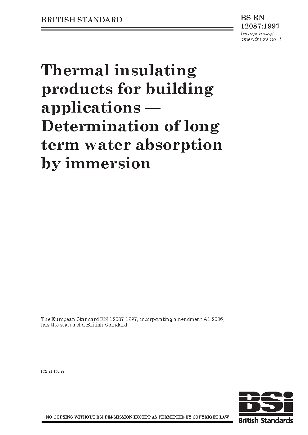 Thermal insulating products for building applications. Determination of long term water absorption by immersion