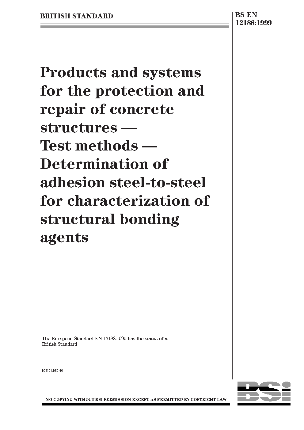 Products and systems for the protection and repair of concrete structures. Test methods. Determination of adhesion steel-to-steel for characterization of structural bonding agents