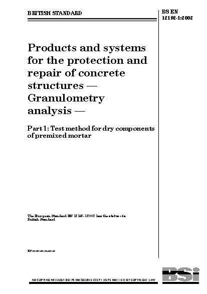 Products and systems for the protection repair of concrete structures. Granulometry analysis Test method dry components premixed mortar