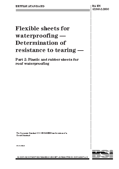 Flexible sheets for waterproofing. Determination of resistance to tearing (nail shank) Plastic and rubber roof waterproofing