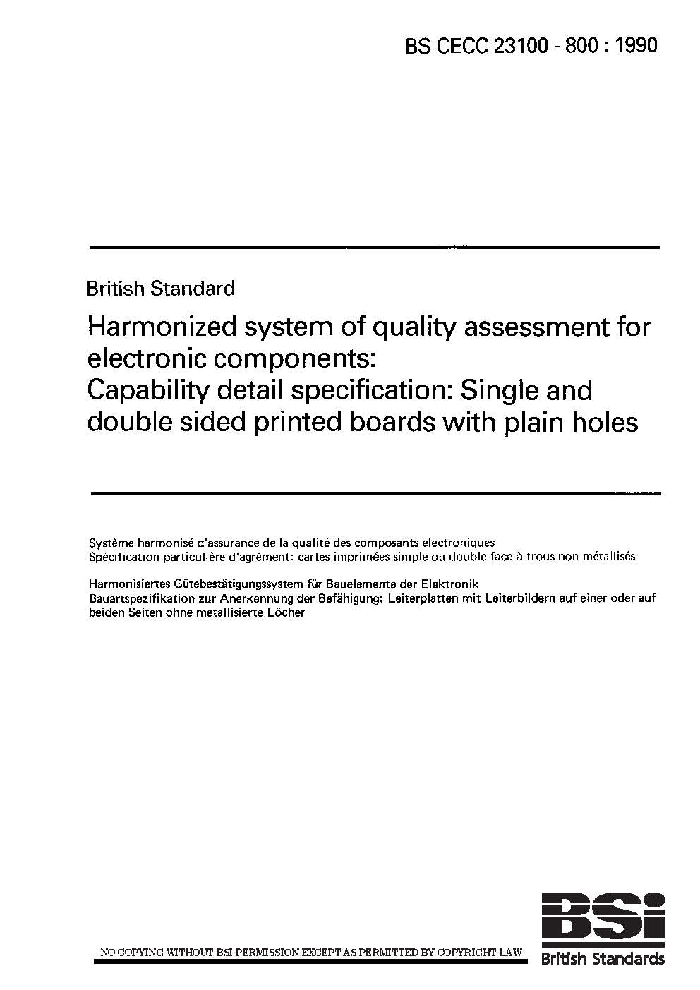 Harmonized system of quality assessment for electronic components. Capability detail specification: single and double sided printed boards with plain holes