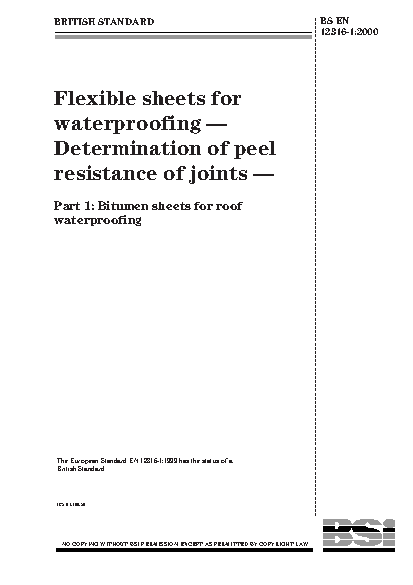 Specimen preparation;Bituminous products;Sheet materials;Flexible materials;Waterproof materials;Peeling tests;Test equipment;Bitumens;Peel resistance;Joints;Roof coverings
