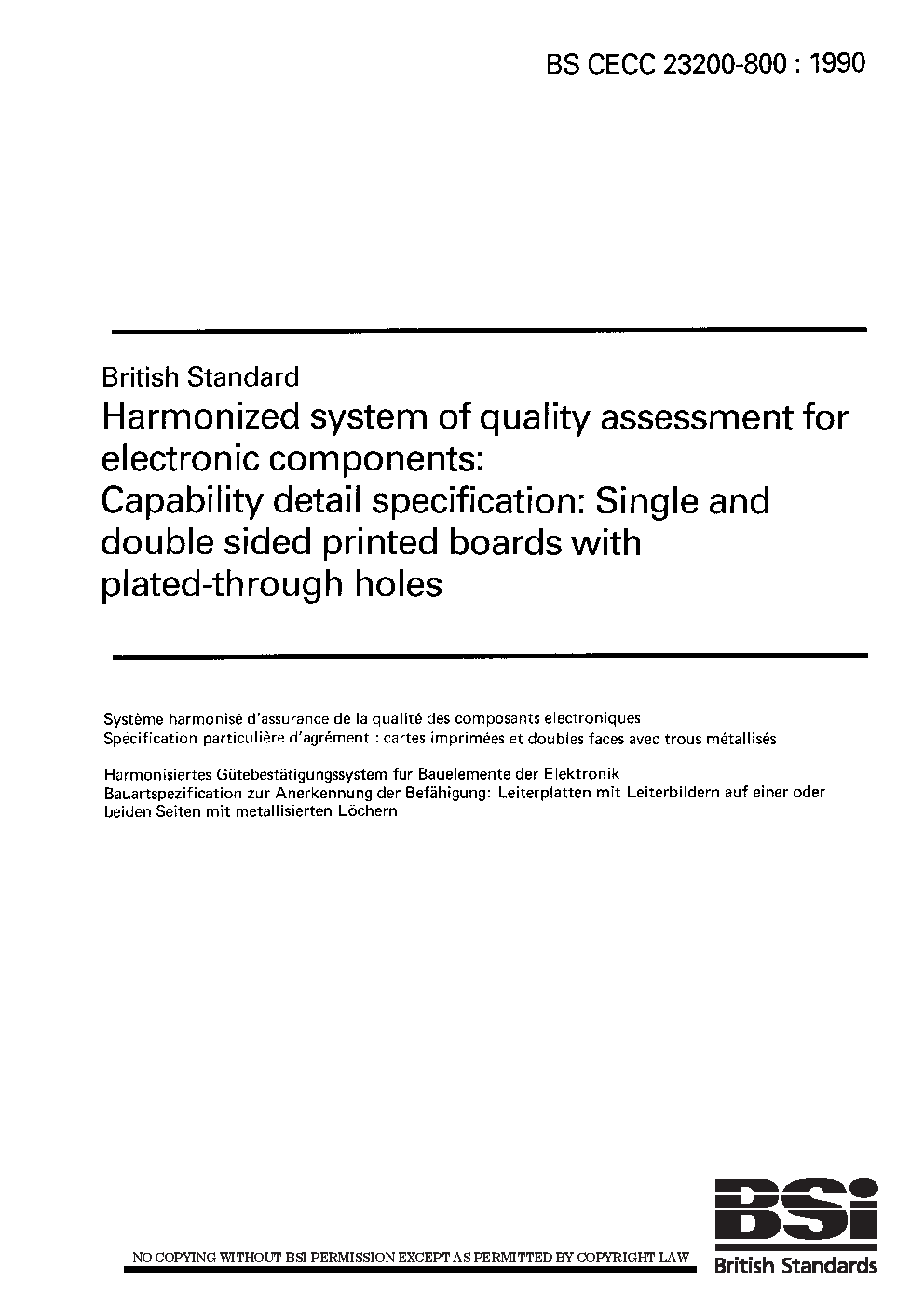 Harmonized system of quality assessment for electronic components: capability detail specification: single and double sided printed boards with plated-through holes