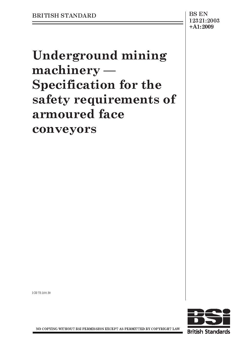 Underground mining machinery. Specification for the safety requirements of armoured face conveyors