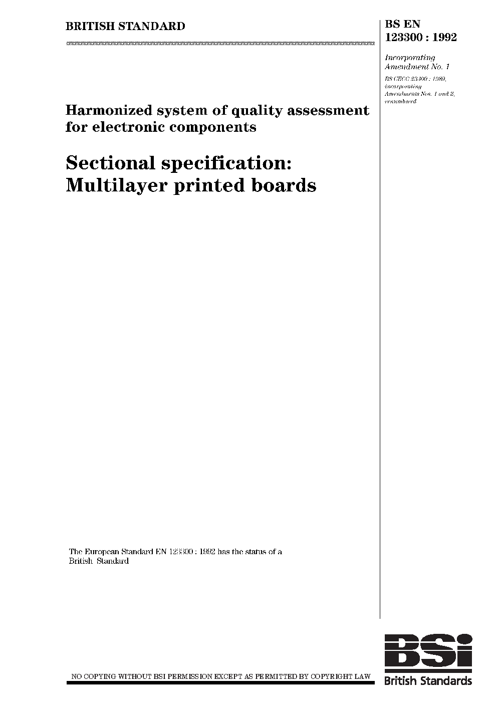 Specification for harmonized system of quality assessment for electronic components. Sectional specification. Multilayer printed boards