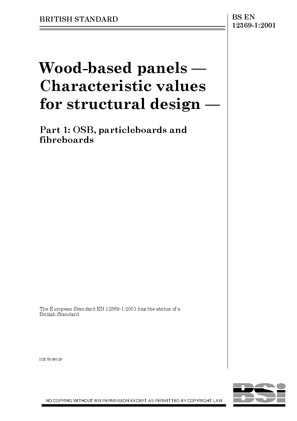 Wood-based panels. Characteristic values for structural design OSB, particleboards and fireboards