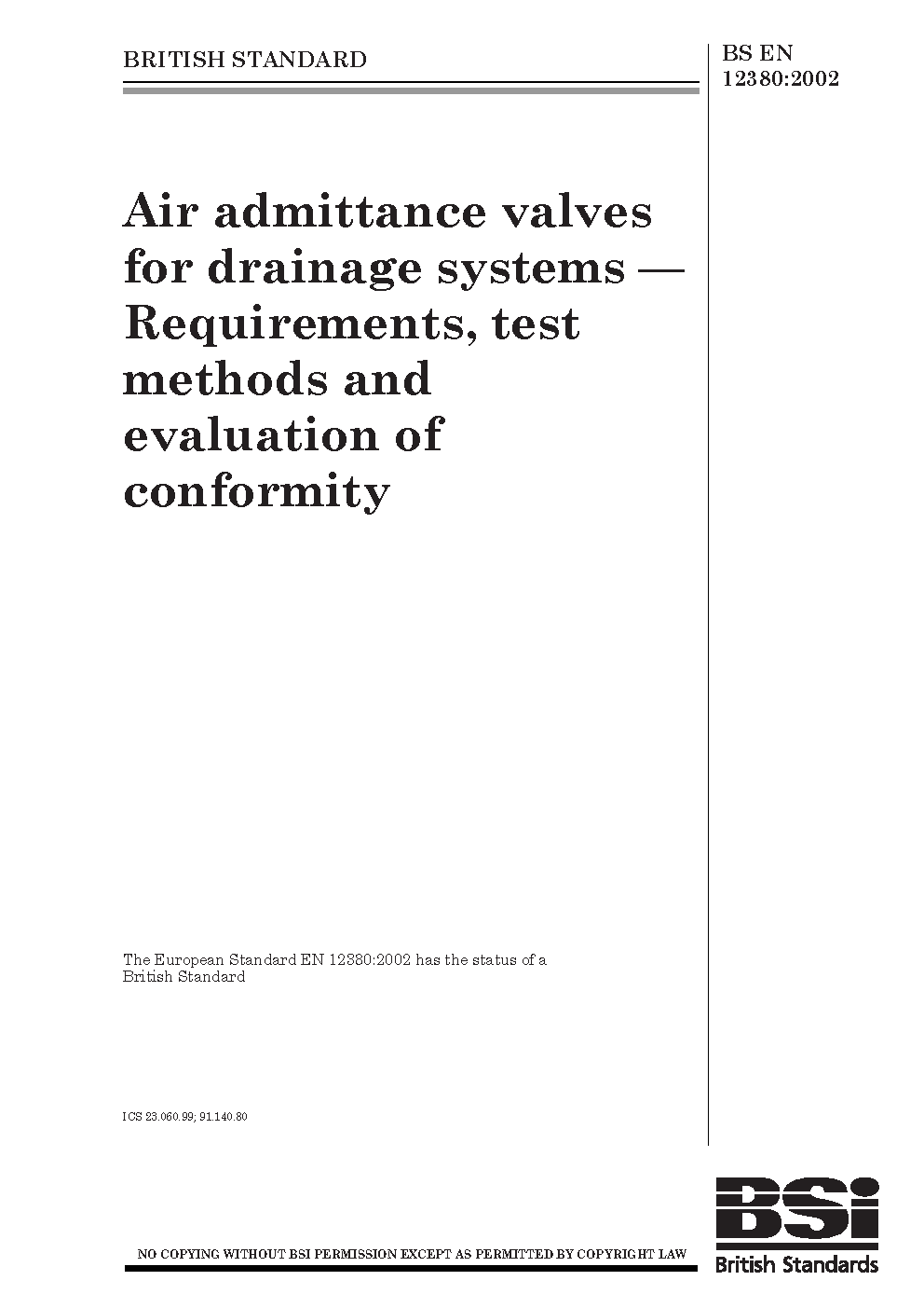 Air admittance valves for drainage systems. Requirements, test methods and evaluation of conformity