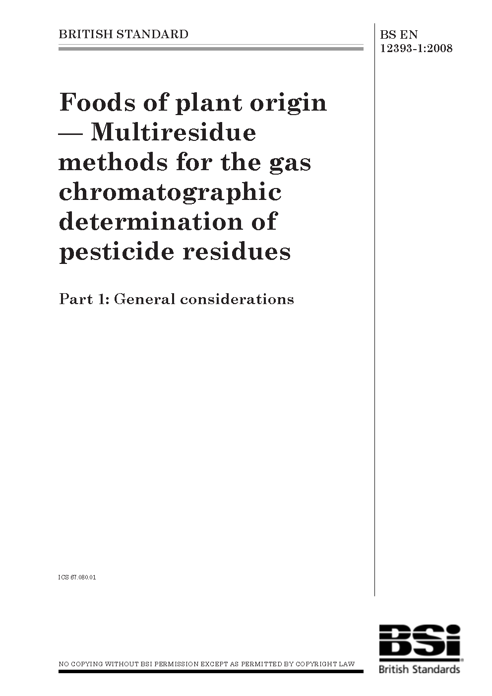Foods of plant origin. Multiresidue methods for the determination pesticide residues by GC or LC-MS/MS General considerations