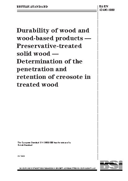 Durability of wood and wood-based products. Preservative-treated solid wood. Determination of the penetration and retention of creosote in treated wood