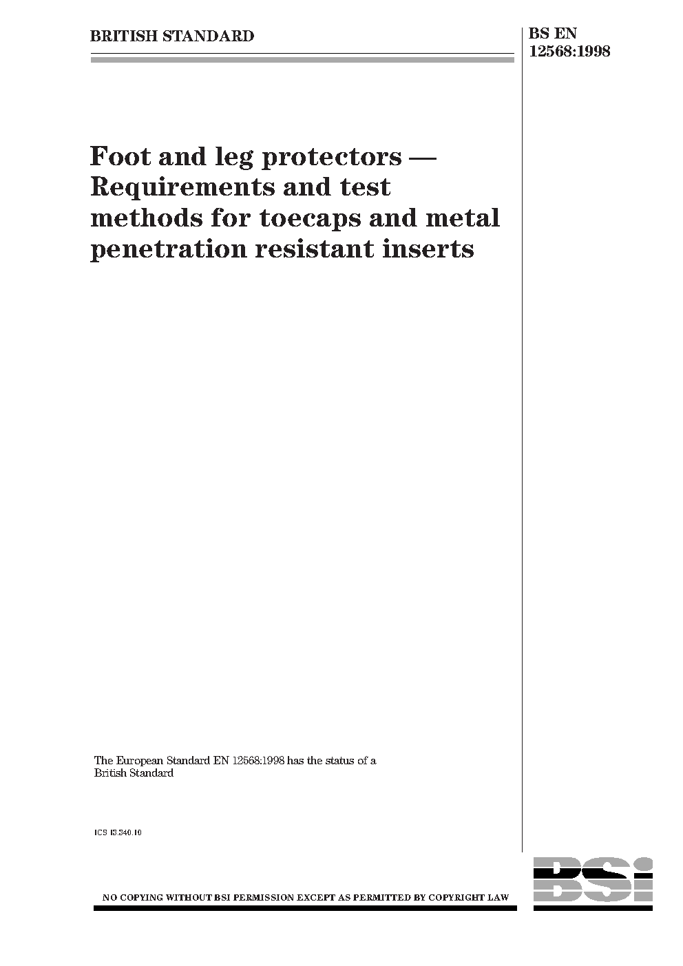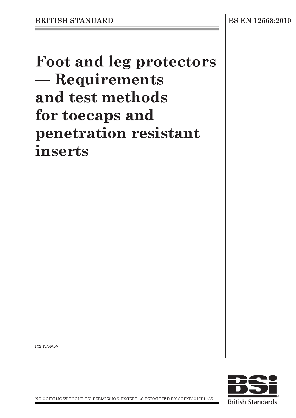 Foot and leg protectors. Requirements and test methods for toecaps and penetration resistant inserts