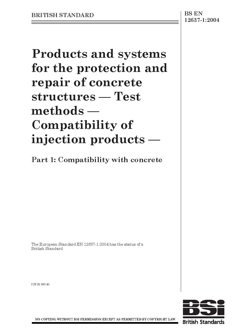 Products and systems for the protection repair of concrete structures. Test methods. Compatibility injection products with