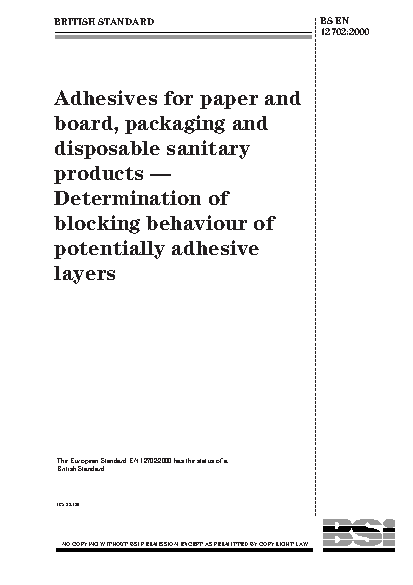 Adhesives for paper and board, packaging and disposable sanitary products. Determination of blocking behaviour of potentially adhesive layers