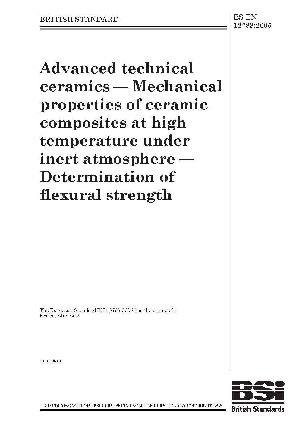 Advanced technical ceramics. Mechanical properties of ceramic composites at high temperature under inert atmosphere. Determination of flexural strength
