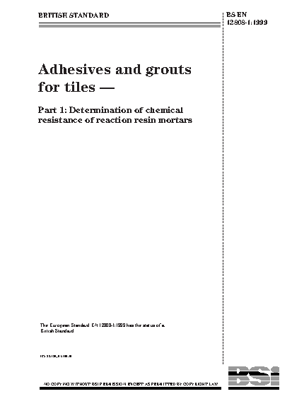 Adhesives and grouts for tiles Determination of chemical resistance reaction resin mortars