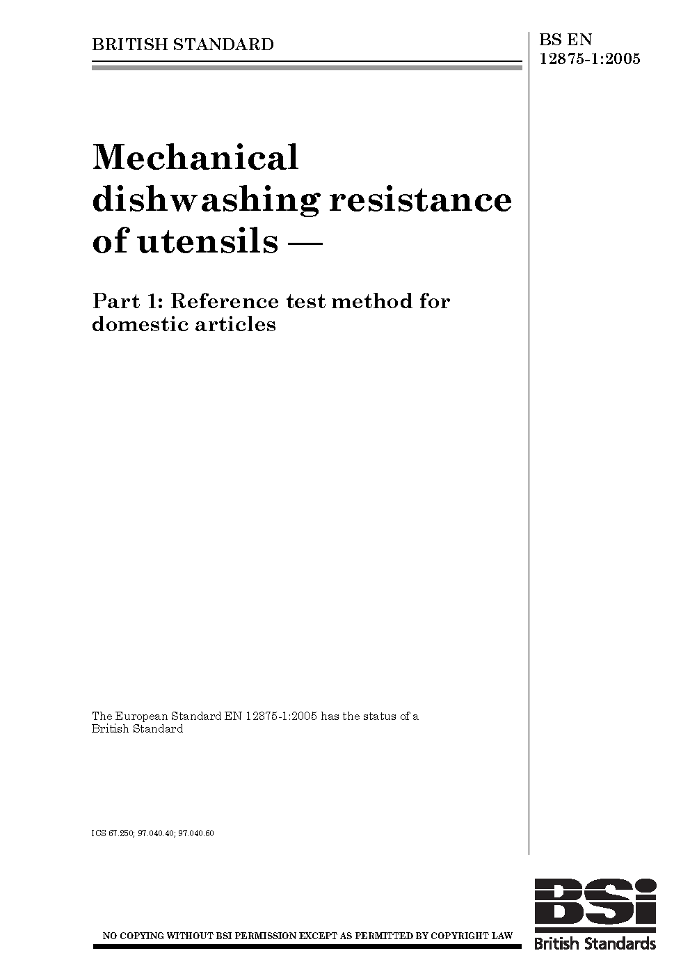 Catering equipment;Glass ceramics;Ceramics;Kitchen utensils;Mechanical cleaning;Testing conditions;Washing tests;Metals;Vitreous enamel;Domestic;Glass;Dishwashing machines;Inspection;Plastics