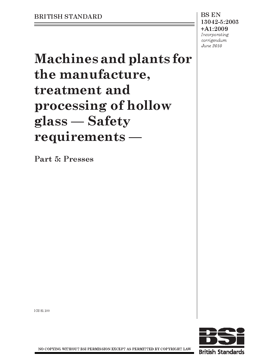 Instructions for use;Stopping;Hazards;Safety measures;Occupational safety;Verification;Safety devices;Pressing (forming);Production equipment;Glass;Machine tools;Presses;Control devices;Starting;Equipment safety;Containers;Hollow;Electrical equipment;Marking;Interlocks