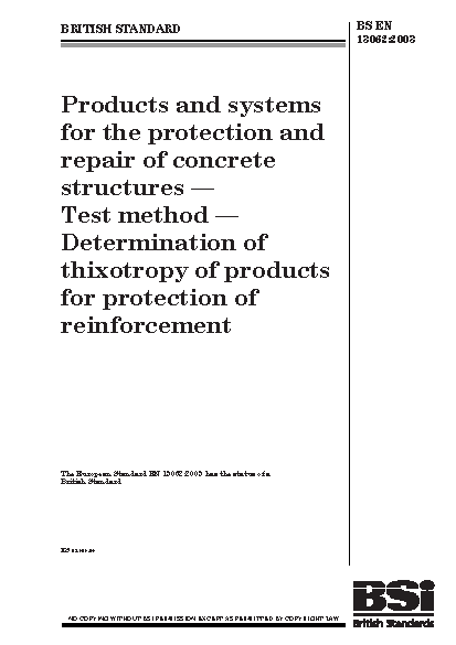 Products and systems for the protection and repair of concrete structures. Test method. Determination of thixotropy of products for protection of reinforcement