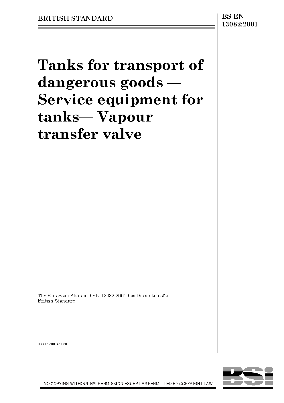 Tanks for transport of dangerous goods. Service equipment for tanks. Vapour transfer valve