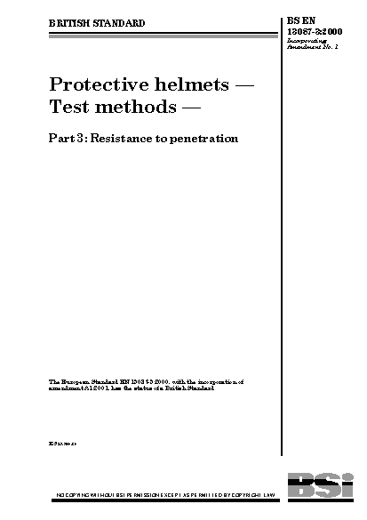 Protective clothing;Helmets (protective);Performance testing;Penetration tests;Physical testing