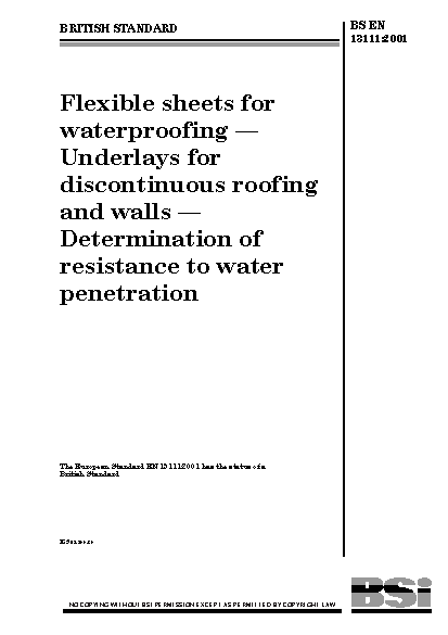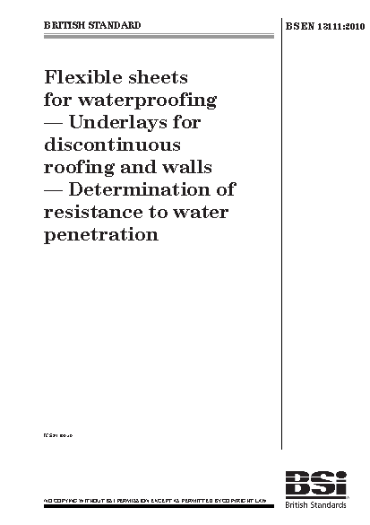 Flexible sheets for waterproofing. Underlays for discontinuous roofing and walls. Determination of resistance to water penetration