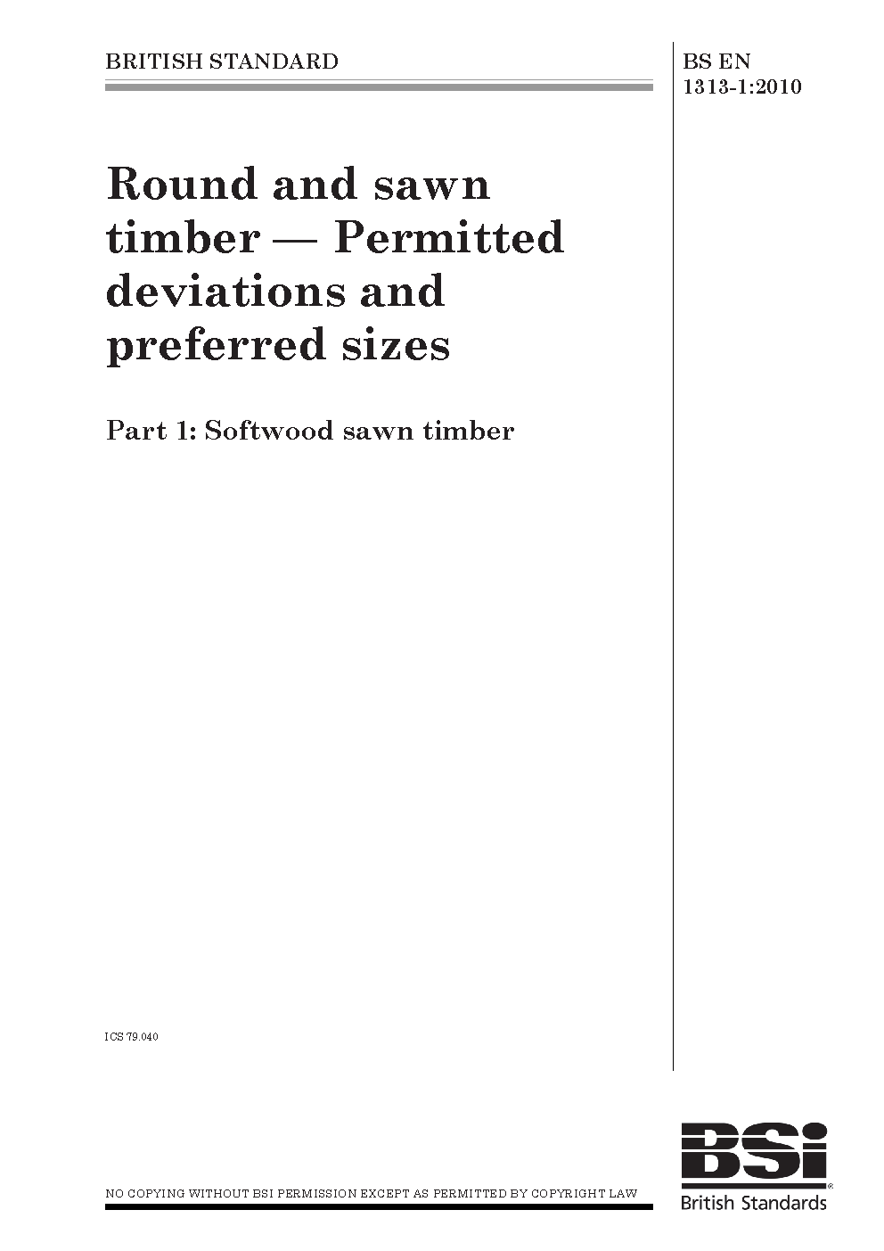 Round and sawn timber. Permitted deviations preferred sizes Softwood timber