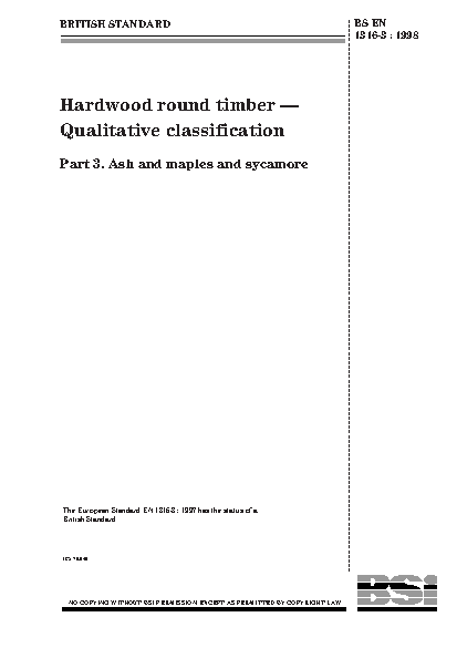 Hardwood round timber. Qualitative classification Ash and maples sycamore