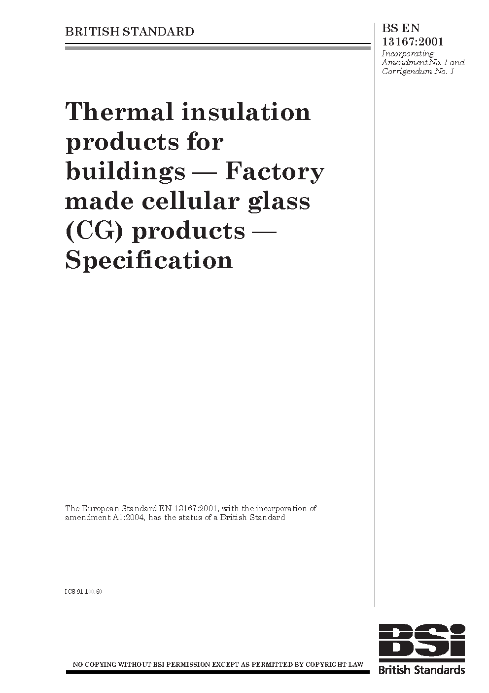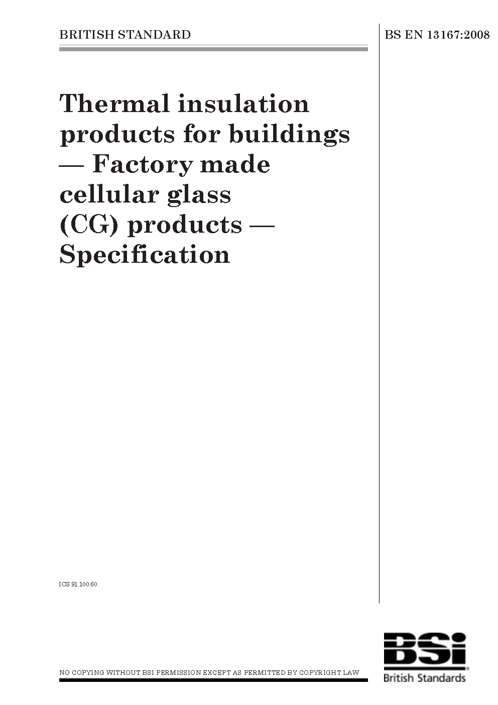 Thermal insulation products for buildings. Factory made cellular glass (CG) products. Specification