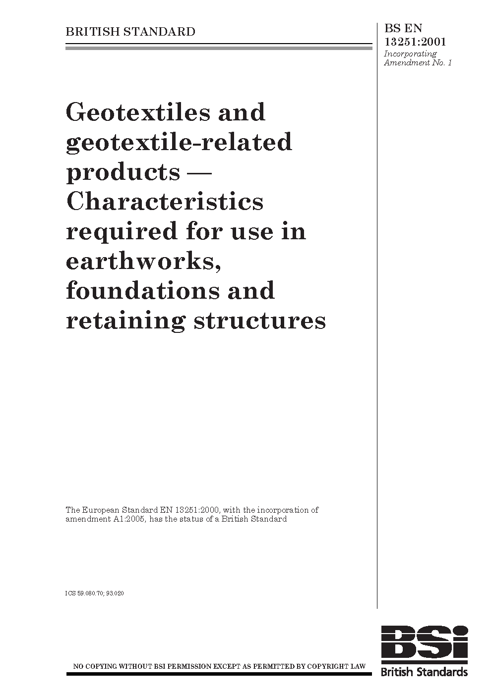 Geotextiles and geotextile-related products. Characteristics required for use in earthworks, foundations and retaining structures