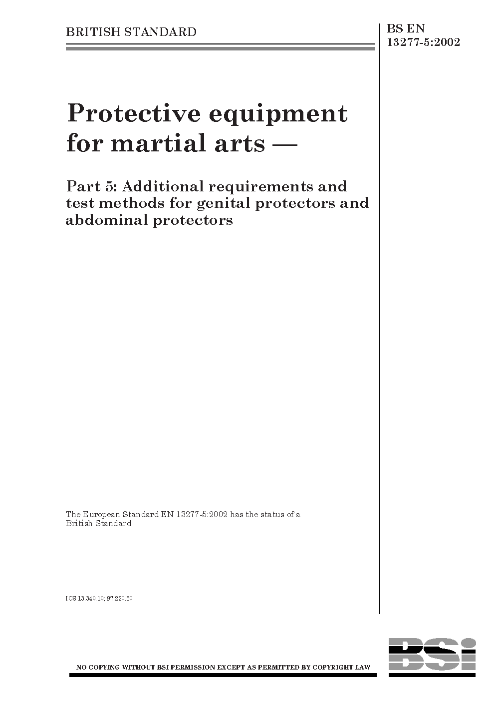 Protective equipment for martial arts Additional requirements and test methods genital protectors abdominal