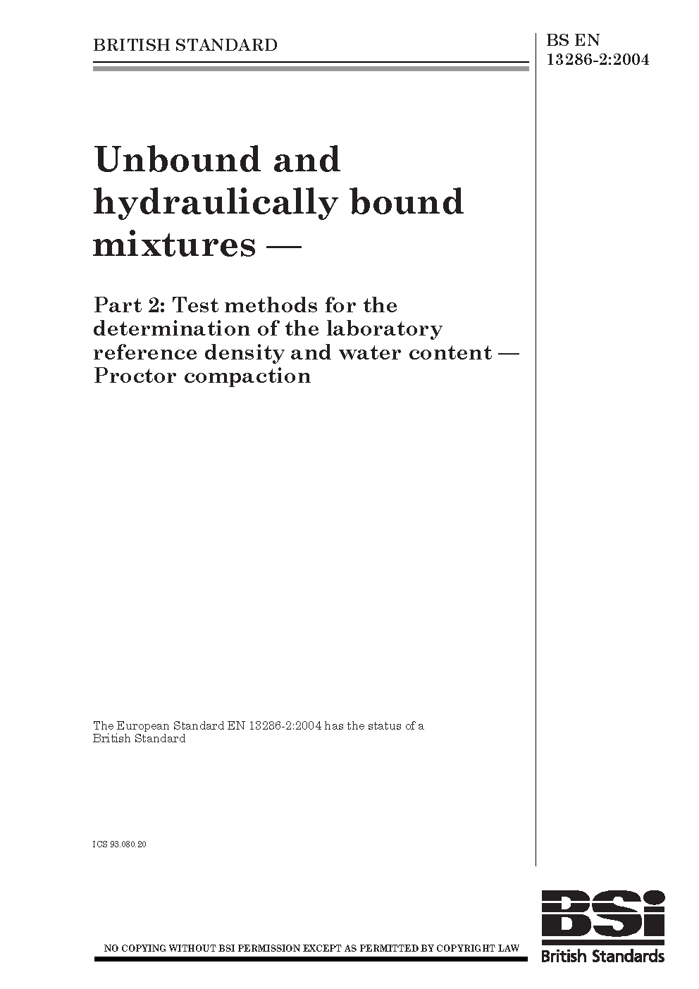 Unbound and hydraulically bound mixtures Test methods for the determination of laboratory reference density water content. Proctor compaction