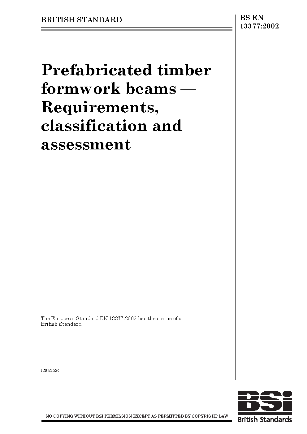 Timber beams;Prefabricated parts;Construction systems parts;Falsework;Formwork