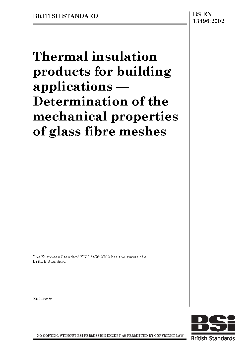 Thermal insulation products for building applications. Determination of the mechanical properties of glass fibre meshes as reinforcement for External Thermal Insulation Composite Systems with renders (ETICS)