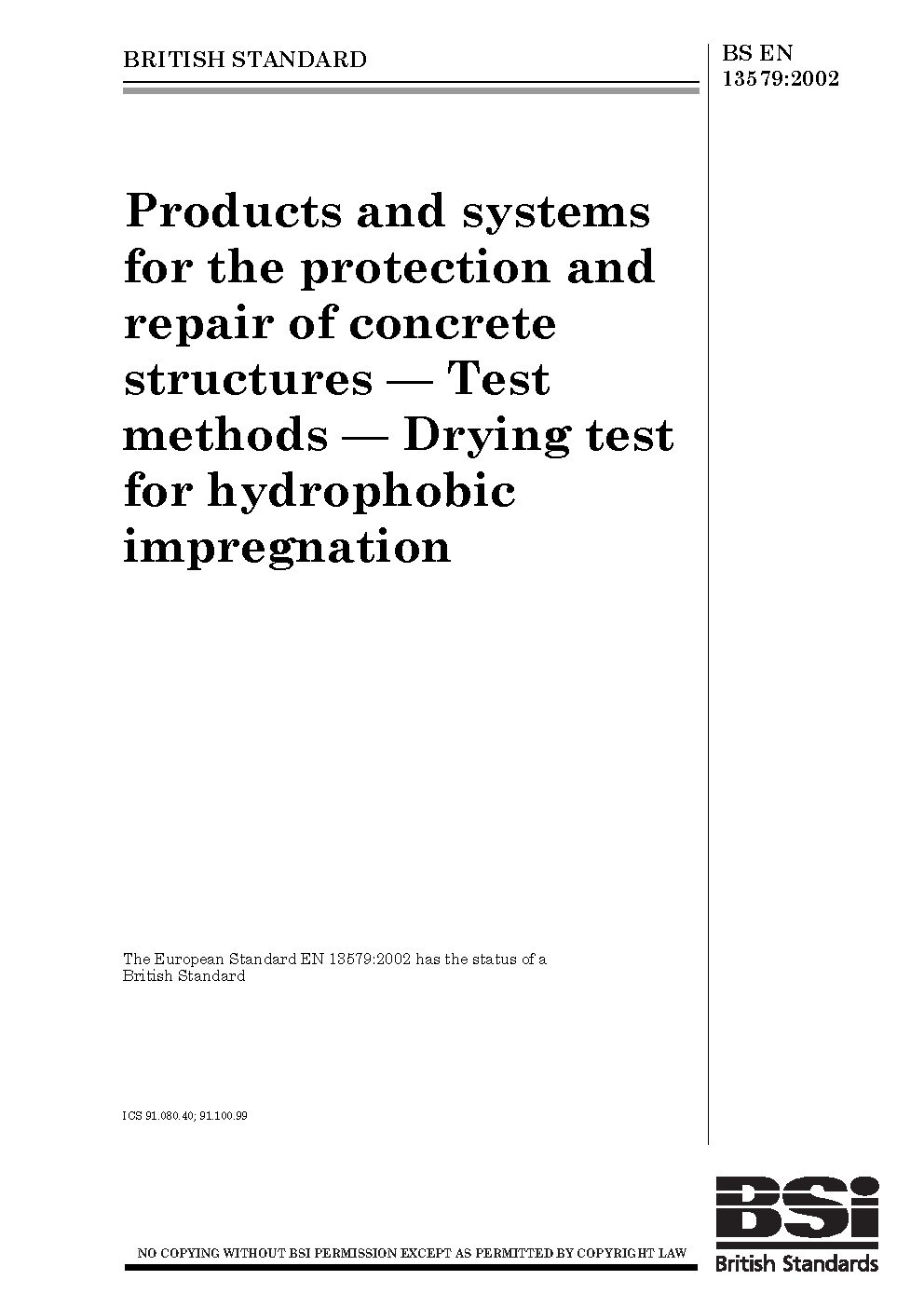 Drying tests;Environmental testing;Hydrophobic materials;Cement and concrete technology;Concrete structures;Concretes;Impregnated materials;Structural systems;Structures;Repair